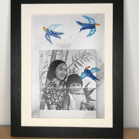 Je réalise des créations personnalisées à partir de vos images, objets ou textiles, pour transformer un souvenir ou un support précieux en pièce unique.