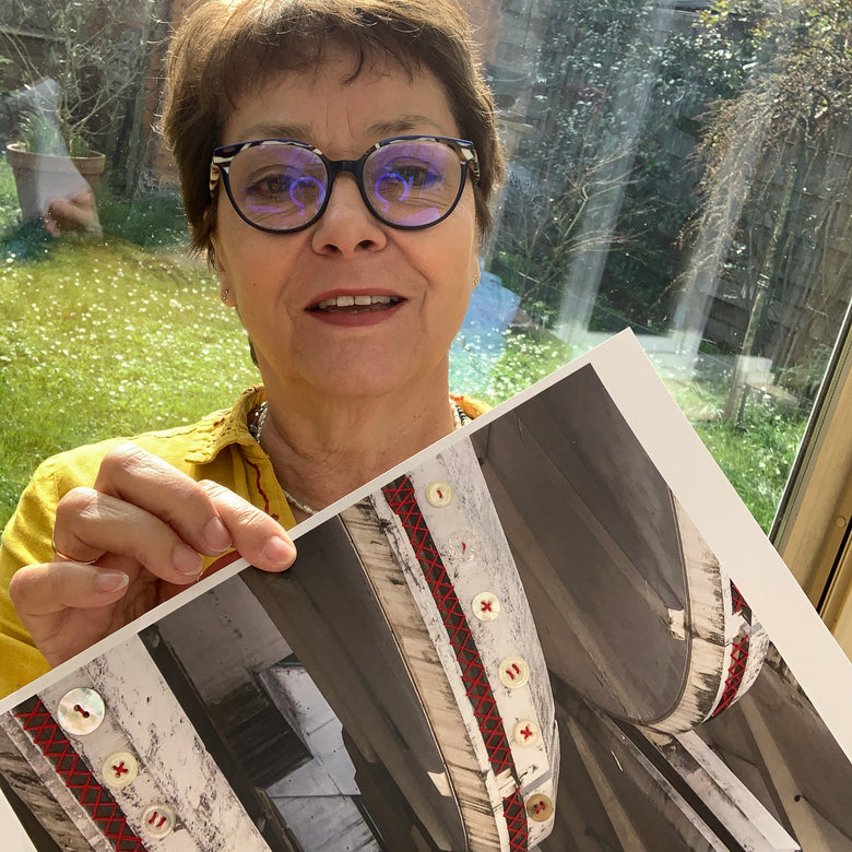 Cette liberté m’a immédiatement séduite.Le fil ne suit plus un dessin imposé : il dialogue avec le support, souligne une ligne, relie un détail, transforme une image.Je me suis formée avec des brodeuses sud-américaines avant de développer mon propre style.